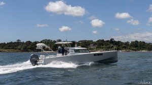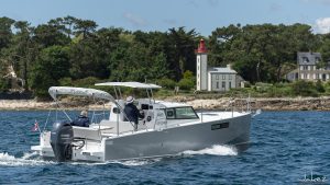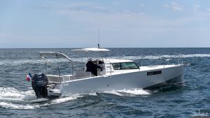 Loxo 32 est une nouvelle génération de bateaux de croisière à moteur. S'appuyant sur des technologies de fabrication haut de gamme, son déplacement est ultra léger ce qui a permis le dessin d'une carène hybride, planant extrêmement tôt et nécessitant peu de puissance pour la propulser. Équipée de 1 moteur Yamaha 100CV (ou 115 ou 150CV, ou bi-moteur), elle vous amènera en croisière avec une autonomie de ~215 milles à 14nd. Son design moderne et la luminosité de son intérieur en font un bateau confortable et agréable à vivre. Ses deux plateformes de bain, sa table de cockpit transformable en grand bain de soleil arrière vous permettront de profiter au maximum de chaque mouillage.